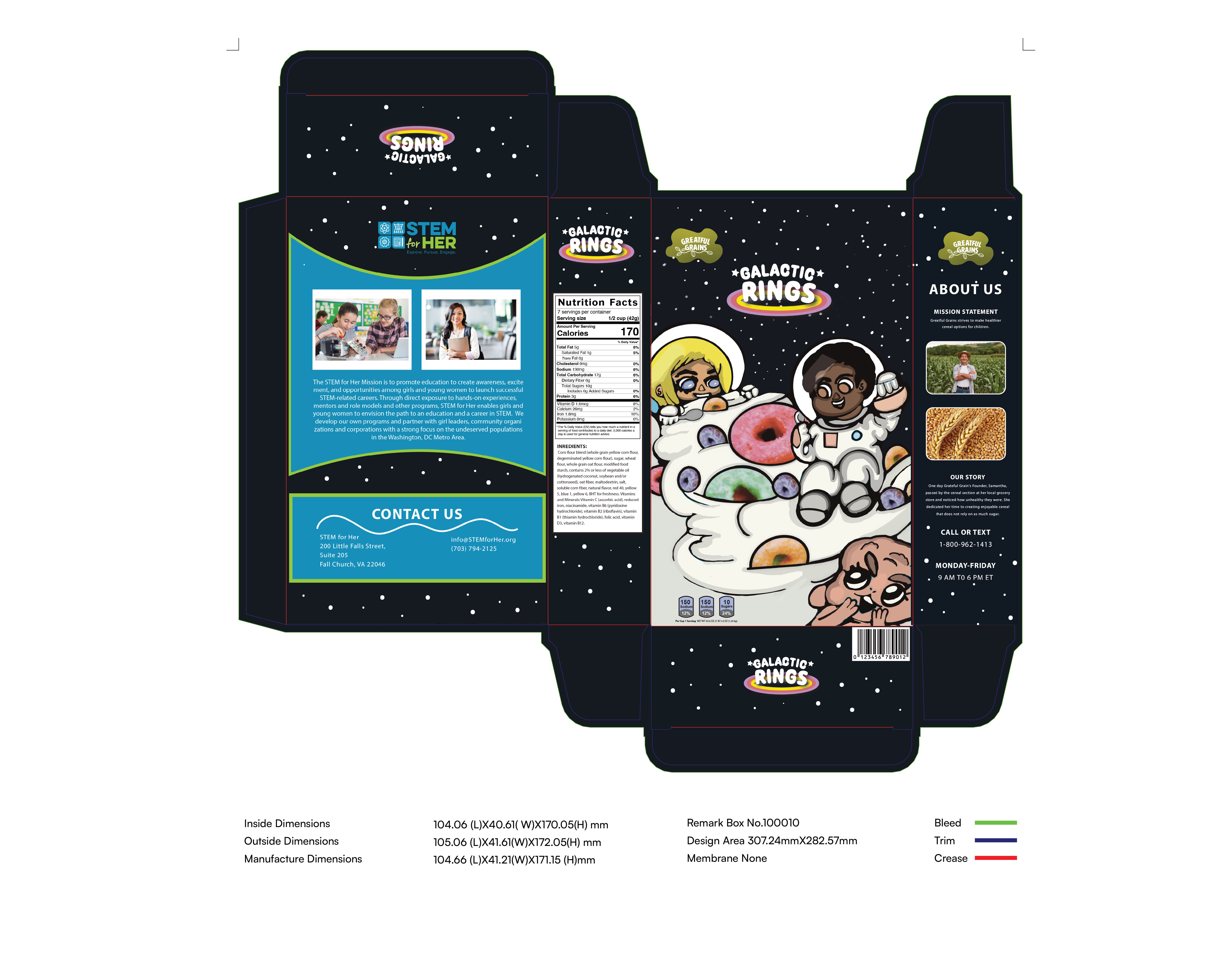 This project aims to create a fun kid's cereal brand for a food company named Greatful Grains. Designs were also made on the back of the for a non-profit, Stem For Her, to bring awareness to their cause.